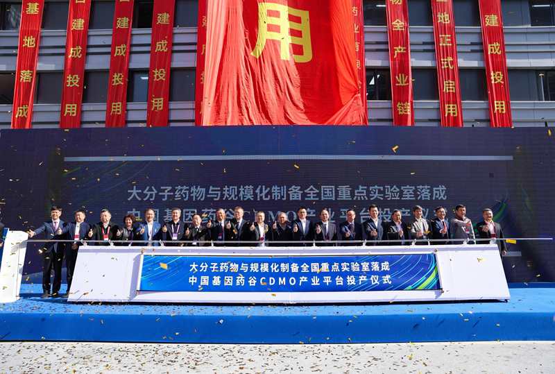实验室重点打造三大特色集群,即重组蛋白药物创新与规模化生产集群、细胞治疗技术与工艺开发集群、新型大分子药物技术集群。除了依托现有平台外,温州医科大学与地方政府共同投资21亿元,在中国基因药谷打造基础研究平台和新药转化平台。其中新药转化平台重点用于建设“大分子药物CDMO规模化制造基地”,目前已完成基础建设。当天,还举行了中国基因药谷CDMO产业平台投产仪式。