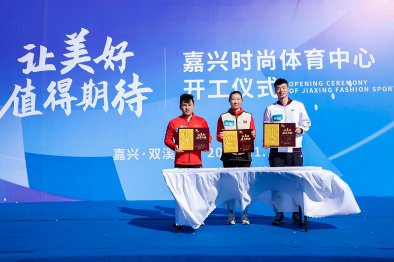开工仪式上,“冠军之路”“福至双溪”两项活动启动。东京奥运会羽毛球混双冠军王懿律、中国首枚帆船470级世界杯赛金牌获得者高海燕、世界举重锦标赛男子69公斤级总成绩和挺举冠军冯吕栋,为时尚体育中心留下冠军印记。王懿律为嘉兴双溪湖体育文化展示馆捐赠001号藏品。