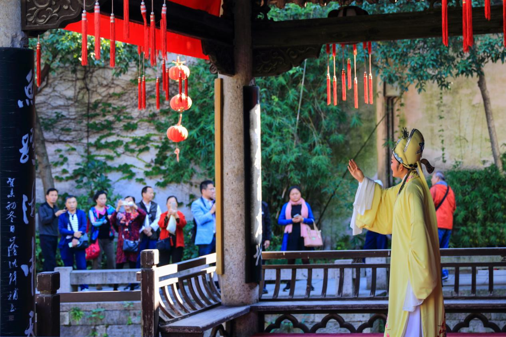 越剧小镇坐落在绍兴嵊州,小镇因越剧而生。每天下午,越剧小镇古戏楼里都有演出,这里是为嵊州本地的越剧团和全球濒危剧种设立的“专属剧场”,被誉为越剧界的“金色大厅”,见证着百年越剧回溯源头的悠远历史,更承担着越剧传承和发扬的使命。(邵雯/文 绍兴市文化广电旅游局/供图)