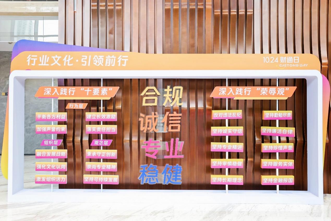 财通证券以“合规、诚信、专业、稳健”的行业文化为导向,形成了新时期“正和财通、乐跑追梦”的企业精神。其中“正”是信念和原则,引领财通证券上下做事做人不忘初心,创新发展首当持正;“和”是理想和方向,引领财通证券上下价值共创协作奉献,担当责任和谐共荣。