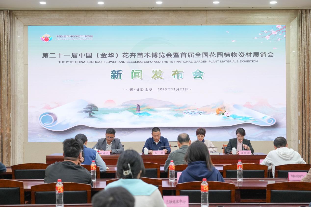 11月22日,浙江省金华市金东区召开第二十一届中国(金华)花卉苗木博览会暨首届全国花园植物资材展销会新闻发布会。发布会上宣布,第二十一届中国(金华)花卉苗木博览会暨首届全国花园植物资材展销会将于11月25日至27日在金华市金东区澧浦花木城举办。
