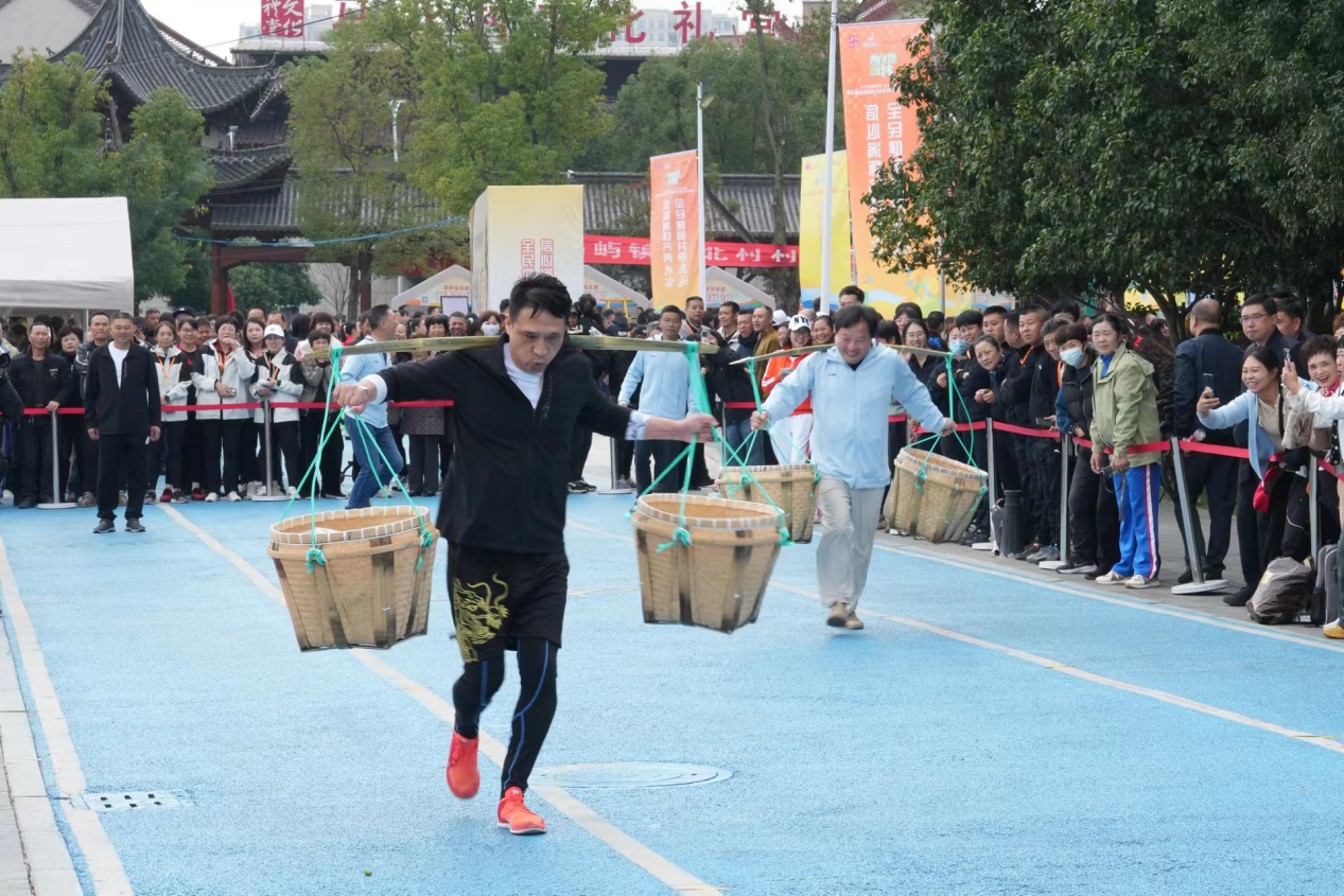 运动员挑着索面担子极速奔跑,现场加油声、呐喊声响成一片。瑞安市融媒体中心供图