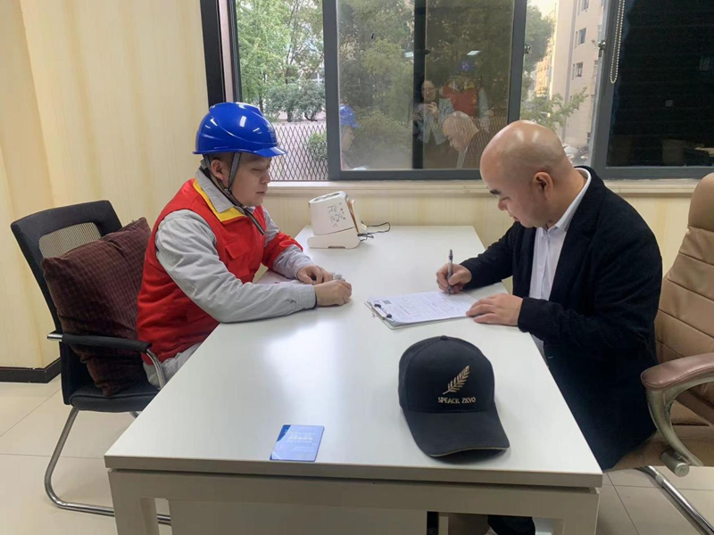国网瓯海供电分公司工作人员与温州市瓯海区东田眼镜制造有限公司负责人签订可中断需求响应告知书。国网瓯海供电分公司供图