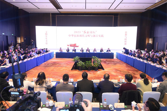 12月1日,2023“红船论坛”中华民族现代文明与浙江实践理论研讨会在嘉兴召开。来自全国各地党政部门、学术界、文化界、媒体、智库200余名专家学者代表参加论坛。论坛以“1+2+1”的形式进行,即一场主论坛、两场专题研讨、一场沉浸式交流。