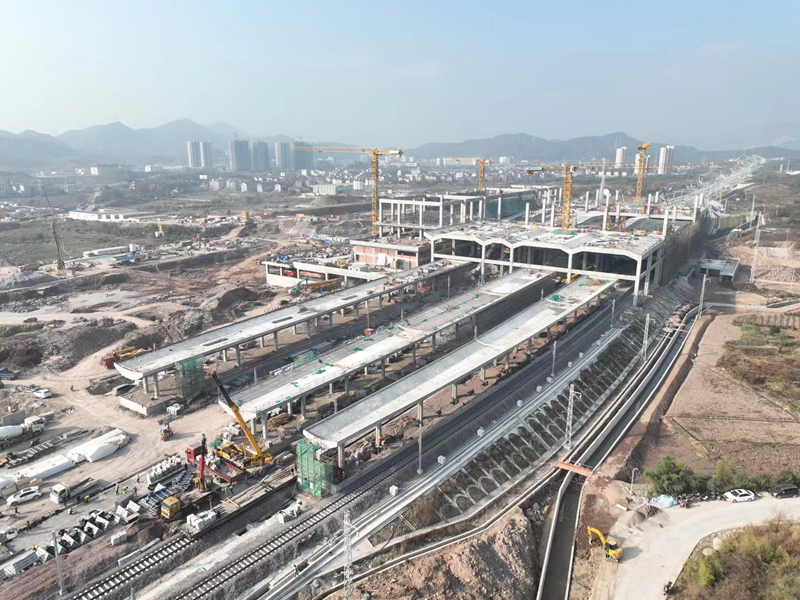 11月30日,随着最后一方屋面混凝土浇筑完成,杭温高铁横店站房项目主体混凝土结构全部完工,标志着横店站房将转入钢结构及装饰装修施工阶段,为明年杭温高铁开通打下基础。