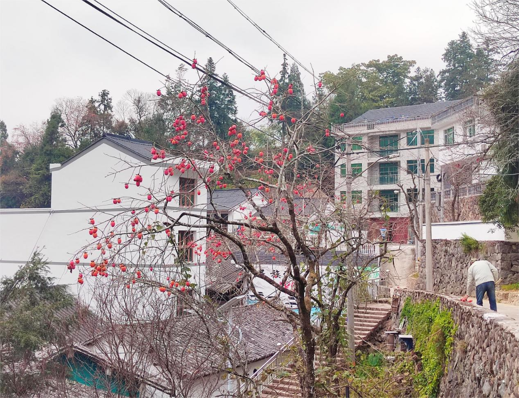 眼下正值柿子季,村里还有不少村民正在采摘门前的柿子树。“这几年村里带着我们养蜂、种果子,大家的收入也上来了。”村民刘大爷说。