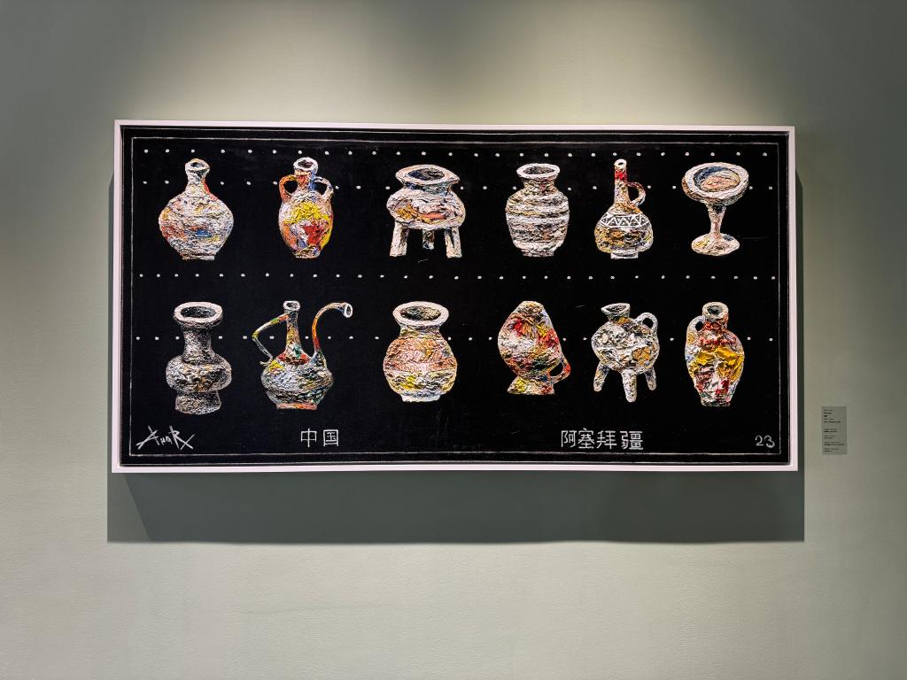 采风作品展上展示的阿塞拜疆艺术家的作品。新华社记者 段菁菁 摄