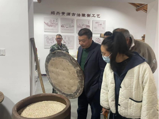 讲解员还向前来参观的侨眷们介绍了南村村村企联营共富工坊——绍兴越酒源乡文旅发展有限公司。