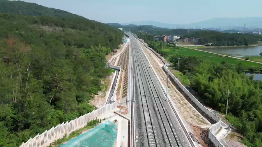 2023年11月,甬金铁路全线铺轨完成,该线建成运营后,将实现世界小商品之都(义乌)与世界第一大港(宁波舟山港)的互联互通。新华网发 浙江省交通运输厅供图