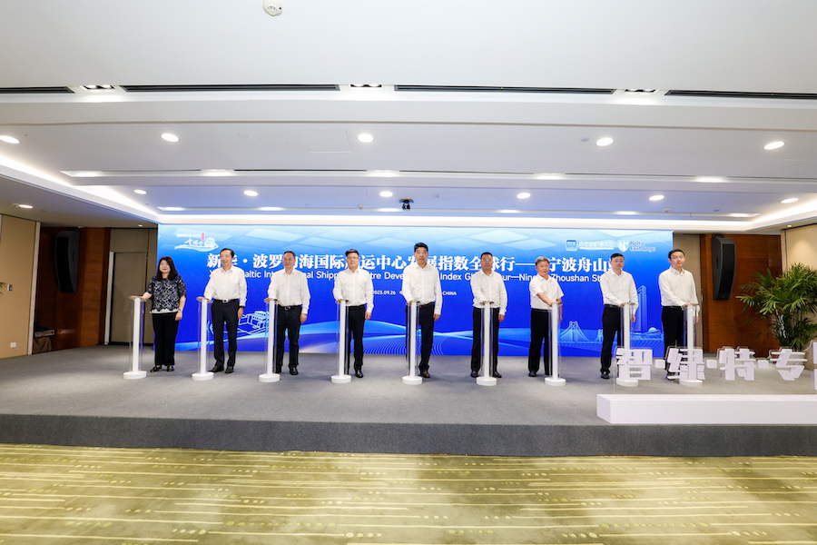 2023年9月,“新华·波罗的海国际航运中心发展指数”全球行首站——宁波舟山站活动在宁波环球航运广场举行。在9月22日发布的《新华·波罗的海国际航运中心发展指数报告(2023)》中,宁波舟山在全球国际航运中心城市排名升至第9位。新华网发 宁波舟山港集团供图