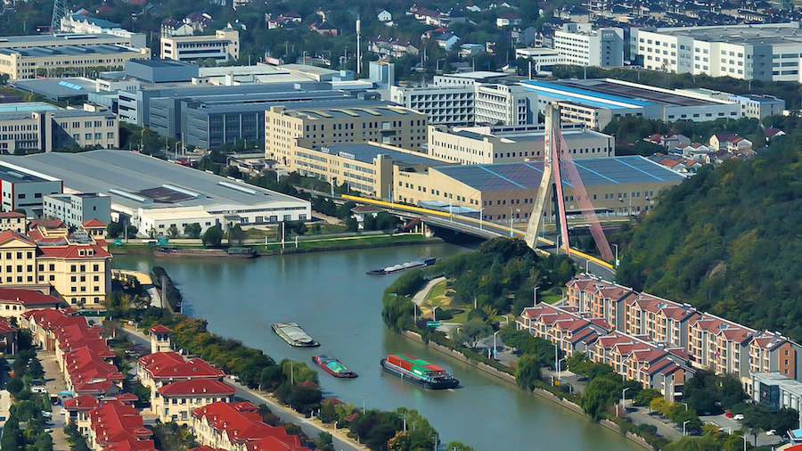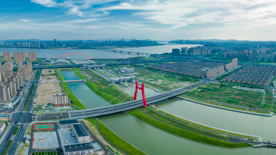 2023年7月,京杭运河杭州段二通道顺利通航。该通道全长26.4公里,总投资167.7亿元,航道等级将达到三级,打通了浙江内河千吨级航道网的关键堵点。新华网发 浙江省交通运输厅供图
