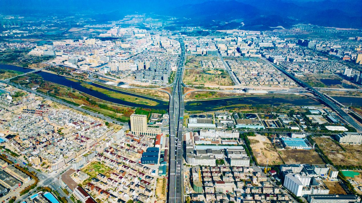 本次通过交工验收的江北至南市段,起点位于湖田枢纽,与甬金高速相接,线路向南连续设7座高架桥穿越东阳市主城区,跨G527国道、S39省道后设西甑山特长隧道,出隧道后终点顺接在建南市至南马段,途经东阳市江北街道、白云街道、吴宁街道、南市街道,线路全长10.7公里,批复概算约45.29亿元,设枢纽互通1处、一般互通及收费站2处,同步恢复改造城区高架桥下方既有地面道路4.75公里。