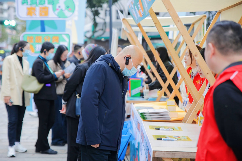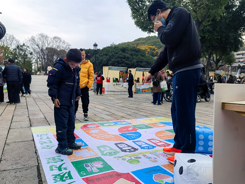 “小朋友,你知道泡沫塑料属于哪种垃圾吗?”一位志愿者指着画布上的4个垃圾桶,问参与飞行棋垃圾分类知识竞答小游戏的男孩。“属于可回收物!”小男孩快速答道。近日,浙江省温州市鹿城区中山公园内举办了一场“让垃圾分类成为低碳生活新时尚”集市活动,通过趣味游戏、分享小妙招、现场宣讲等活动,引导市民主动分类、坚持分类,让“绿色、低碳、环保”的理念深入人心。(林筱/文)