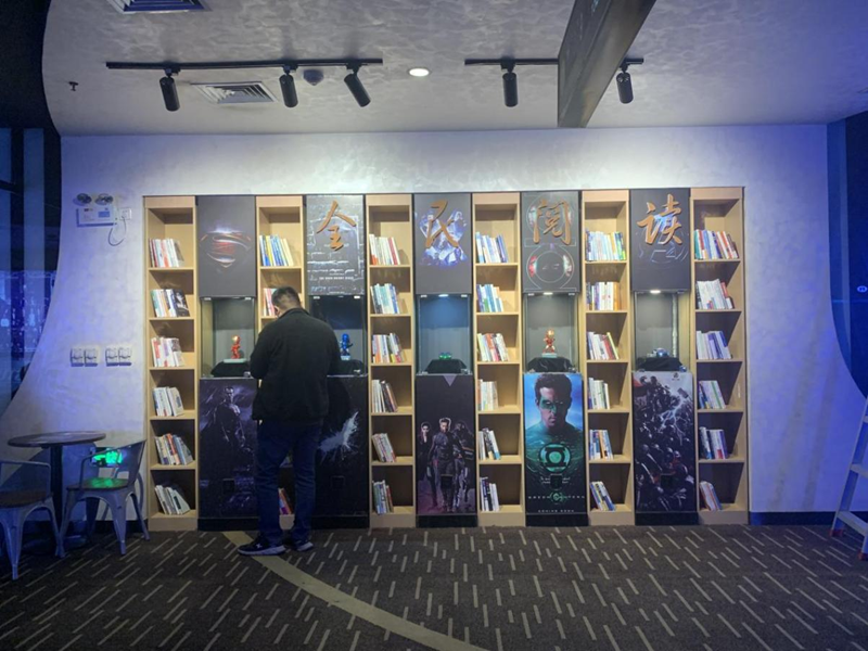 书香光影,文化互融。12月13日,为深化全民阅读工作,有效依托生活场景扩展阅读服务范围,浙江省温州市平阳县万达影院开设“全民阅读厅”,吸引了前来观影的市民驻足观看。