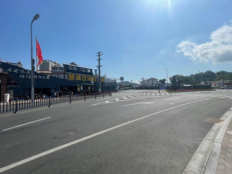 渔港北路是进入石浦东部中心镇区的交通要道。由于渔港北路没有实现道路直连,且年久失修,乱停车现象比较严重,碰到上下班高峰期,就堵得水泄不通。2023年年初开始,石浦对渔港北路施行路面“白改黑”、道路整治拓宽,并对商铺的外立面和店招进行了统一整改,如今道路拥堵情况得到有效缓解。