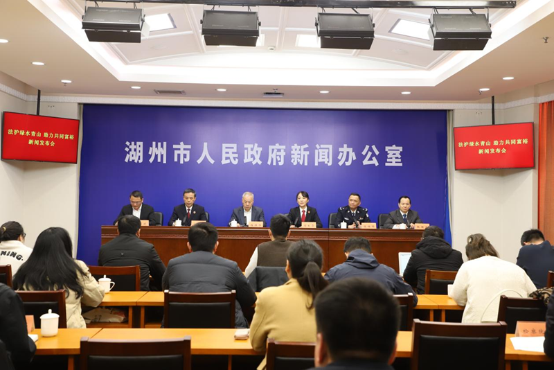 12月20日,浙江省湖州市召开全市政法系统“法护绿水青山 助力共同富裕”新闻发布会。2023年以来,湖州市整合执法司法资源,全力打造法护绿水青山政法综合体,推动全市政法系统生态环境保护工作取得丰硕成果,有效助力生态文明典范城市建设。其中包括建成市县两级法护绿水青山共治中心、发布“生态警务”地方标准等。