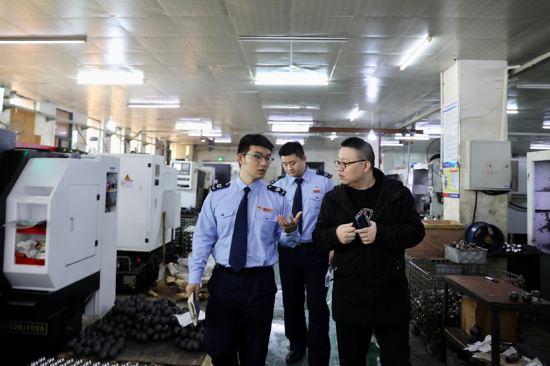 温州高新区税务部门工作人员在企业走访。