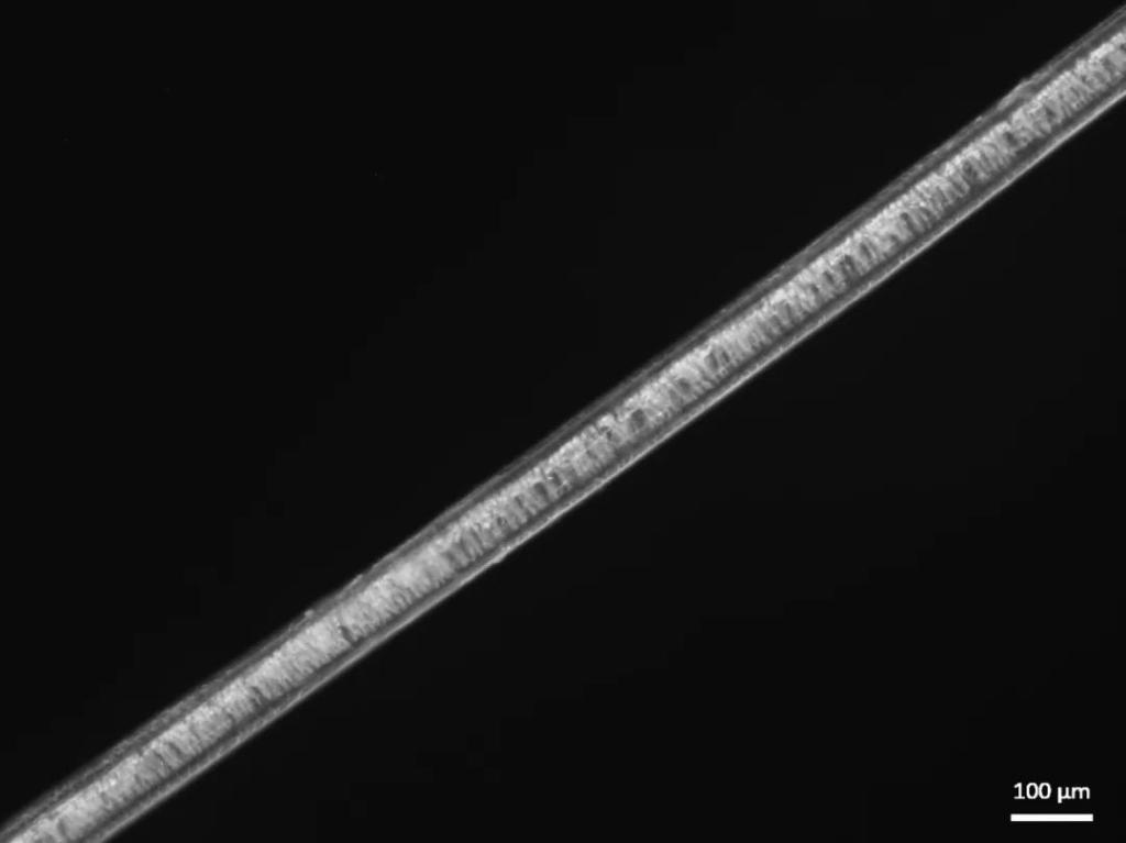 北极熊毛在光学显微镜下的照片。(图片由浙江大学提供)