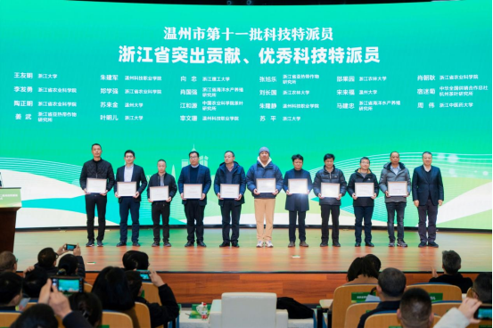 在当天举行的科技特派员出征仪式上,科技特派员个人和团队代表接旗出征。一批浙江省突出贡献科技特派员、浙江省优秀科技特派员、温州市优秀科技特派员受表彰。