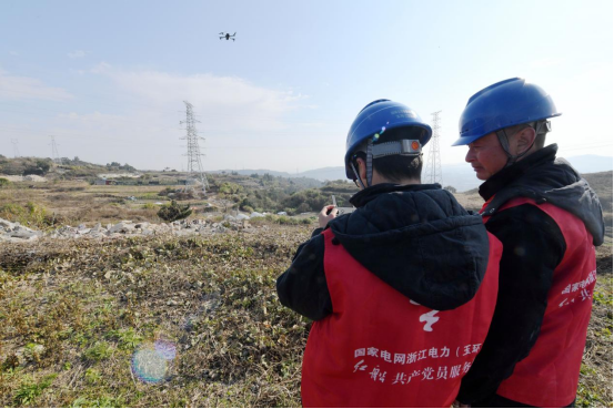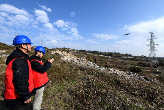 “报告指挥中心,前山头山火重点防护区域排查完毕,输电线路通道正常,未发现可燃物堆积等隐患。”12月26日,在浙江省玉环市玉城街道沙岙村,国网玉环市供电公司输电运检中心员工黄锡晓和金正聪通过无人机对110千伏输电线路通道进行定向飞巡,并汇报巡视情况。