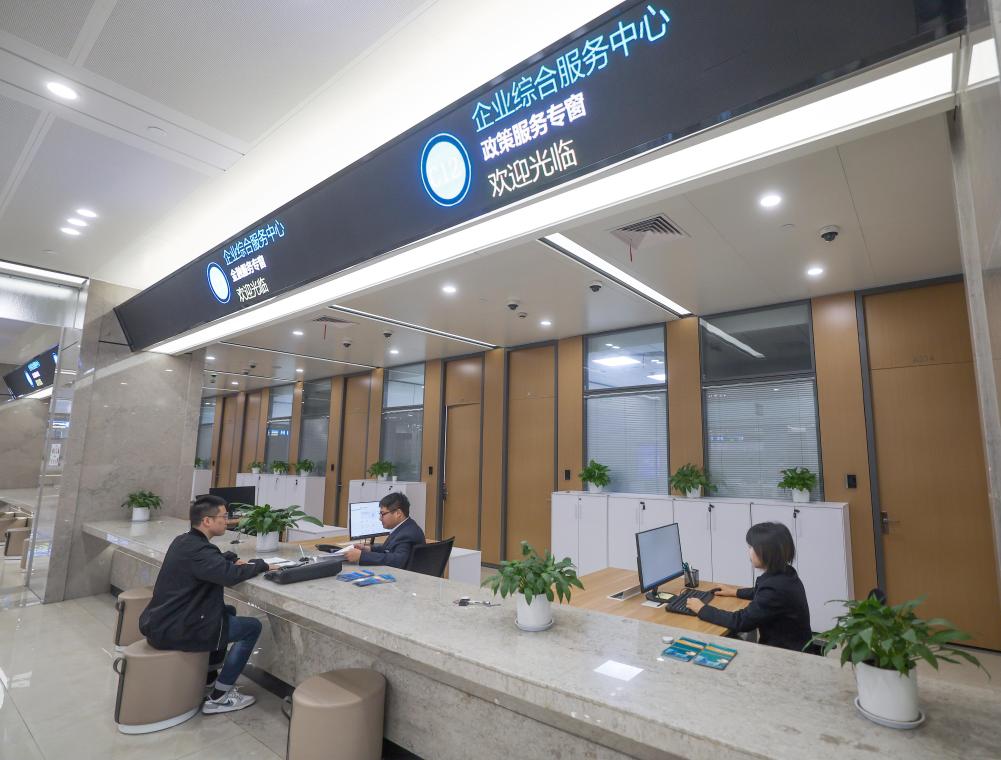 图为企业主在浙江杭州临安区企业综合服务中心的金融服务专窗办理业务。新华社记者徐昱 摄