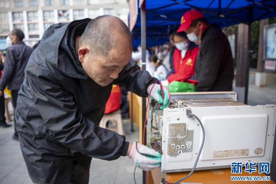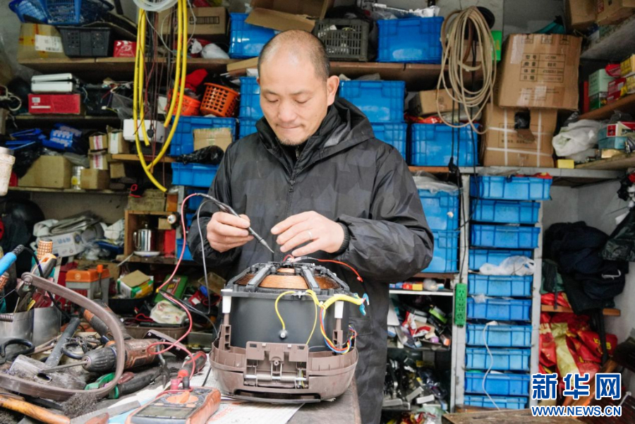 江国清在学雷锋纪念日为群众修理电器。新华网发
