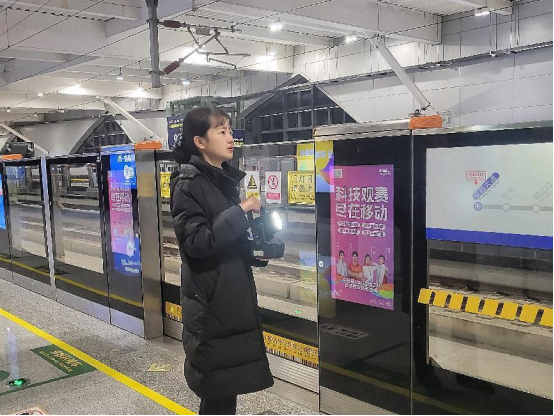 叶梅带领站务员,仔细查看站台门状态,巡视两侧站台,确认站线及两端可视范围的轨行区出清以及接触网有无异物。紧接着,叶梅开始确认扶梯、垂梯开启正常并进行试乘。流程结束后,叶梅与行车值班员共同确认设备恢复情况,并确认运检结果。