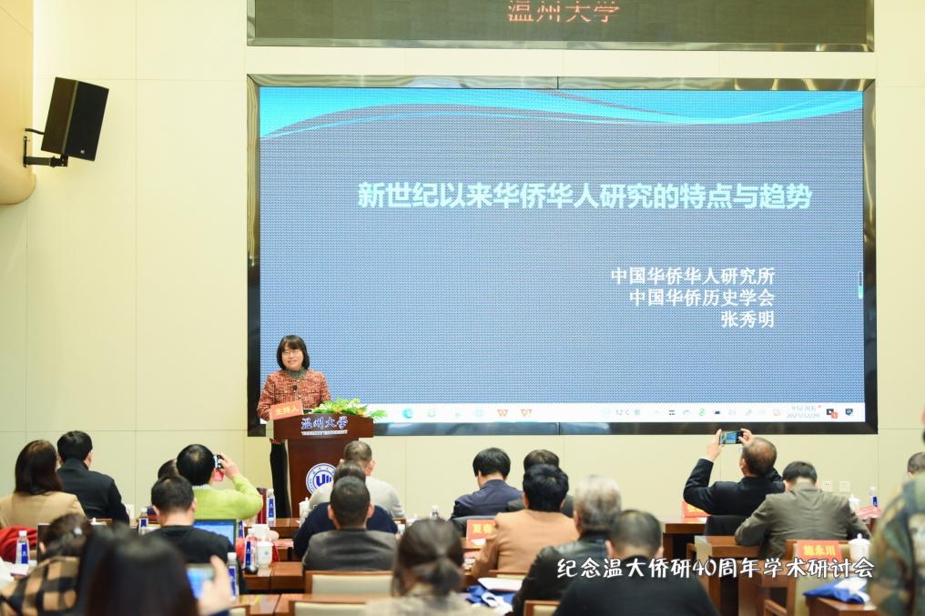 在主旨报告环节,厦门大学教授、世界海外华人研究学会会长、温州大学华侨学院特聘教授李明欢和中国华侨华人研究所副所长、中国华侨历史学会副会长兼秘书长、《华侨华人历史研究》杂志主编张秀明分别作了《欧洲华侨华人研究发展历程与特点》与《新世纪以来华侨华人研究的特点与趋势》的主旨演讲。