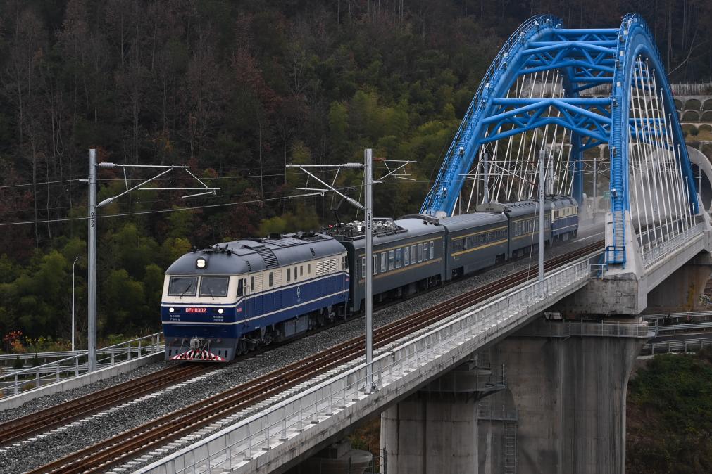 12月12日,动态检测列车行驶在甬金铁路绍兴市所辖嵊州市境内的线路上。新华社记者黄宗治 摄