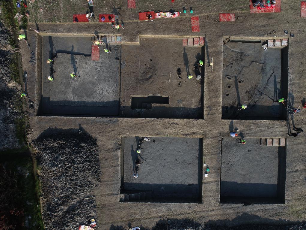 潘家耷遗址发掘场景航拍。宁波市文化遗产管理研究院供图