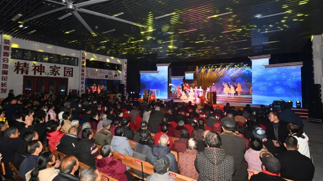 晚上七点,踩街队伍抵达马府下村文化礼堂,“我们的村晚”在欢呼声中拉开帷幕。