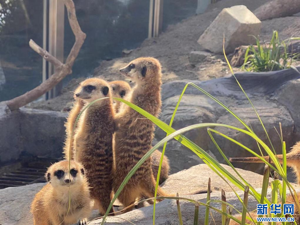 细尾獴用后肢站立观察远处。新华网发 温州动物园供图