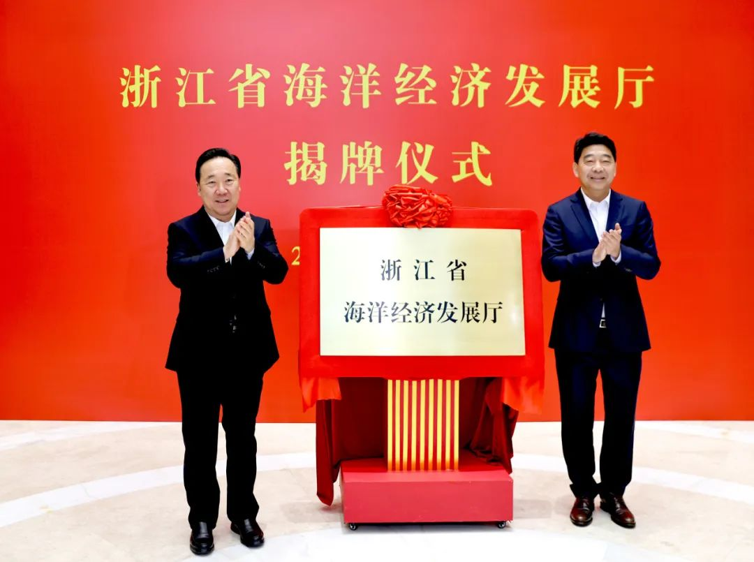 浙江省委副书记、省长王浩和副省长柯吉欣共同为浙江省海洋经济发展厅揭牌。