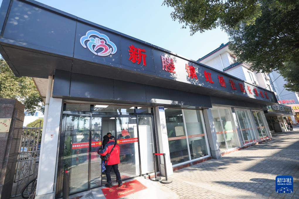 1月23日,老人进入嘉兴秀洲区新塍镇虹桥社区长者食堂就餐。