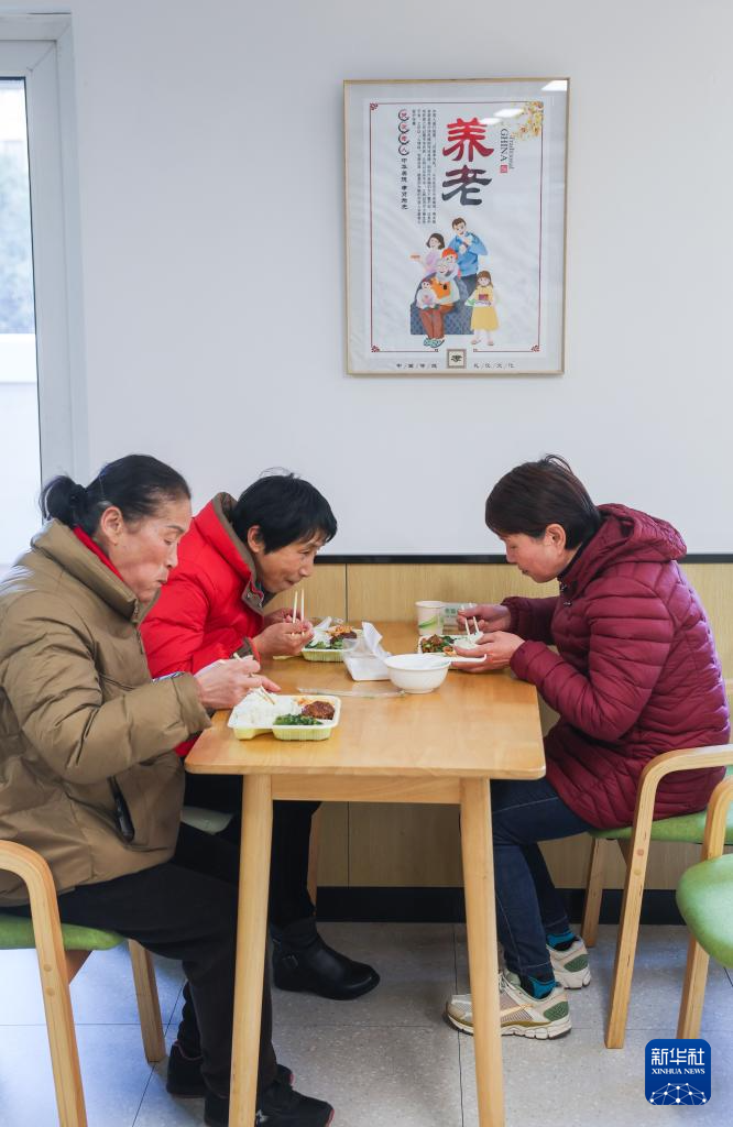 1月23日,老人们在嘉兴秀洲区高照街道运河社区的睦味食堂长者餐厅内就餐。