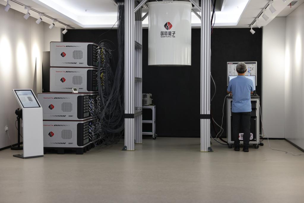 2023年7月21日,国盾量子首席科学家彭承志在位于安徽合肥的科大国盾量子技术股份有限公司展厅操作“祖冲之二号”同款超导量子计算机。新华社记者金立旺 摄
