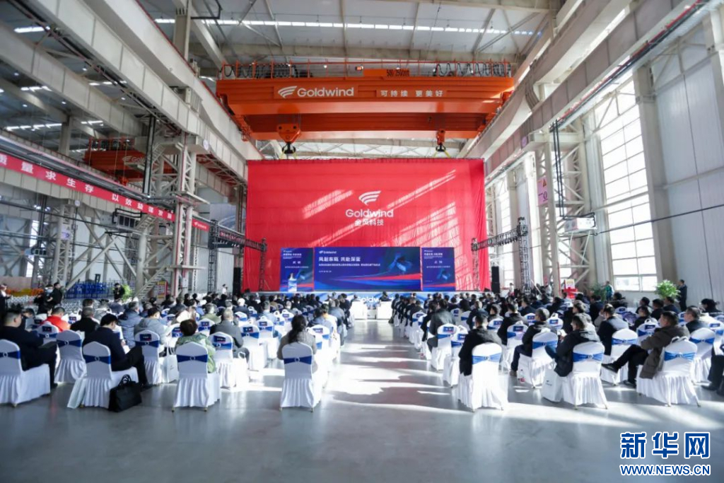 金风科技温州深远海海上风电零碳总部基地首台套机组在温州下线。新华网发 胡鹏程摄