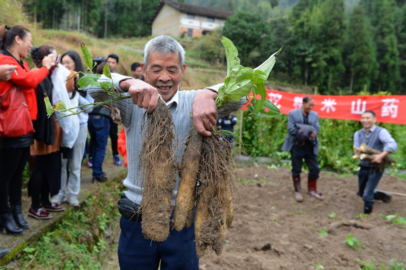 眼下,正是糯米山药丰收的季节。在黄坦镇黄垟村,62岁的陆大伯看着自家山药迎来了大丰收,不禁乐开了花,“今天挖出的山药有1000多斤,等下送到村里的‘共富工坊’,大概能卖4000多块钱。”