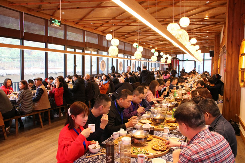 这便是文蓝悦慢“共富工坊”的日常。为了丰富游客体验,工坊深挖畲族文化潜力,把畲家长桌宴推陈出新作为主打文旅产品,建成能容纳600人同时用餐的长桌宴,结合畲家表演让游客深度体验畲族风情,年均接待游客20万余人次。