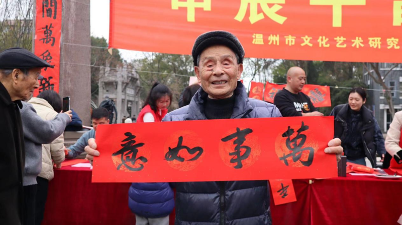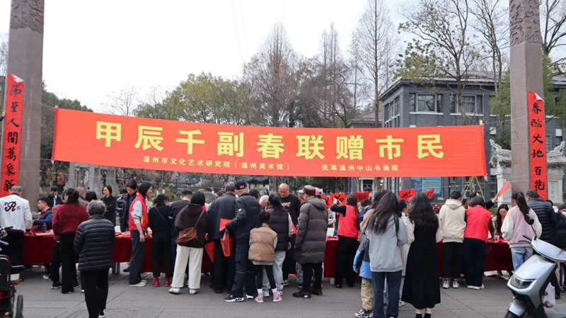 2月1日,温州市文化艺术研究院(温州美术馆)和民革温州中山书画院联合举办甲辰千副春联赠市民活动,以写春联、赠春联的形式辞旧迎新,拉满新春“氛围感”。