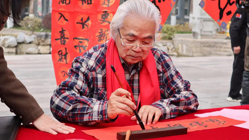飘舞在风中的春联,铺满红纸的书写台,书法家们写春联的身影,围着等候的群众,种种情景构成了一道独特的文化景观,在冬日里格外温暖人心。
