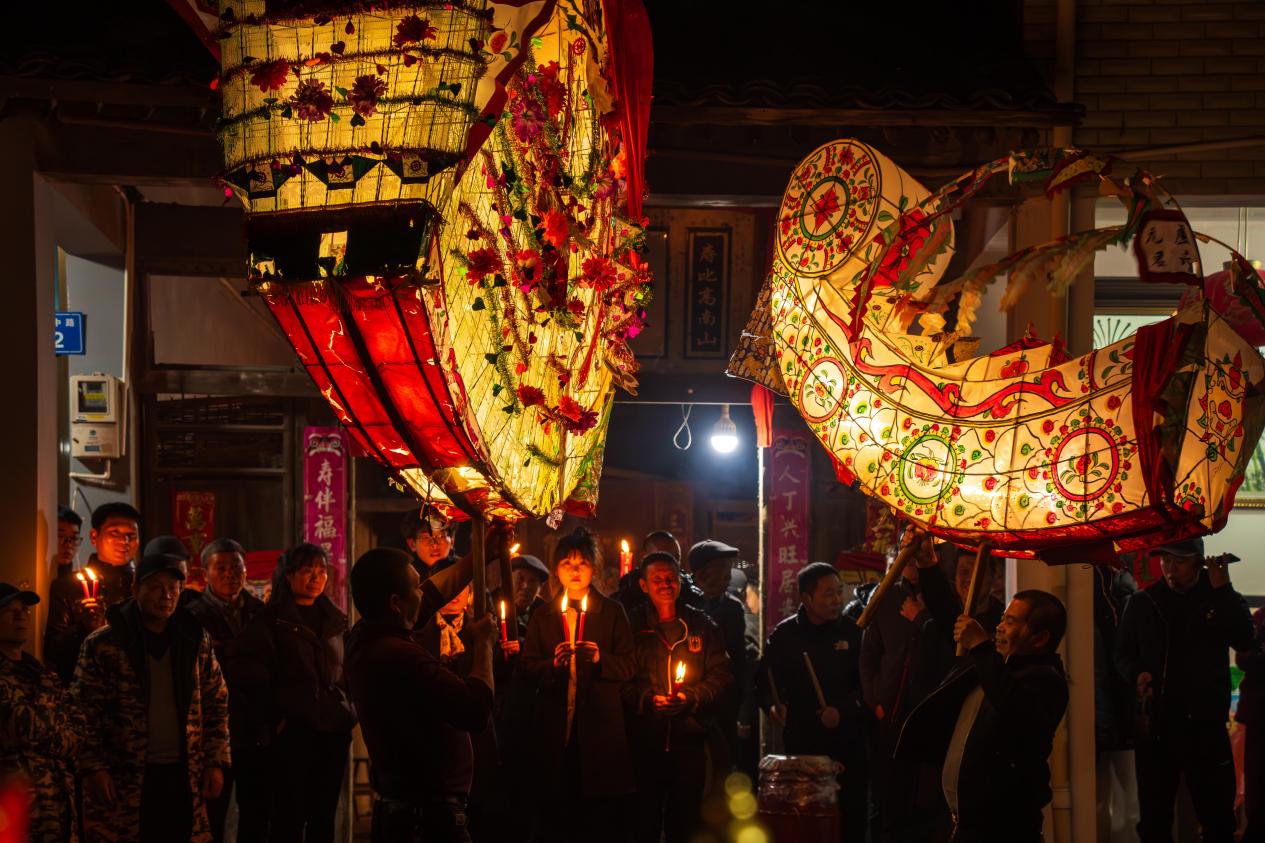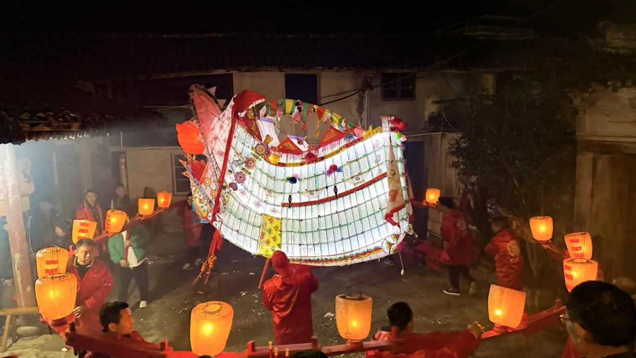 据了解,龙灯在永嘉也称龙船,舞龙灯也称划龙船。舞龙船的历史悠久,从明朝万历年间开始就有记载,是群众在春节时期祈祷风调雨顺的传统习俗,一般从正月初三舞到正月十五。(陈晓光/文 胡金飚 郑贺龙/图)