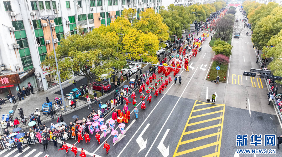 安吉民俗非遗文化踩街活动。新华网发 殷兴华 摄