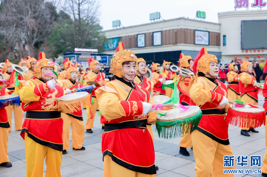 山川乡的威风锣鼓。新华网发 殷兴华 摄