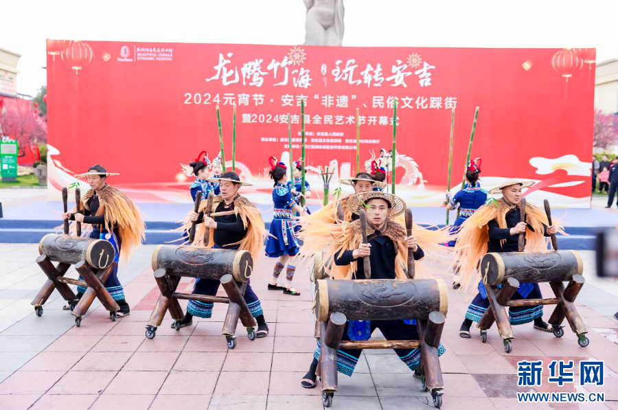 2月23日,浙江省湖州市安吉县举办“龙腾竹海福佑安吉”2024元宵节·安吉民俗非遗文化踩街暨2024安吉县全民艺术节开幕式。