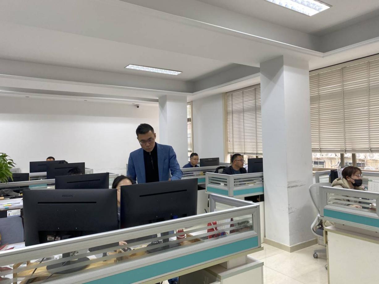 温州华强汽配有限公司负责人与员工交接工作事宜。温州市鹿城区委宣传部供图