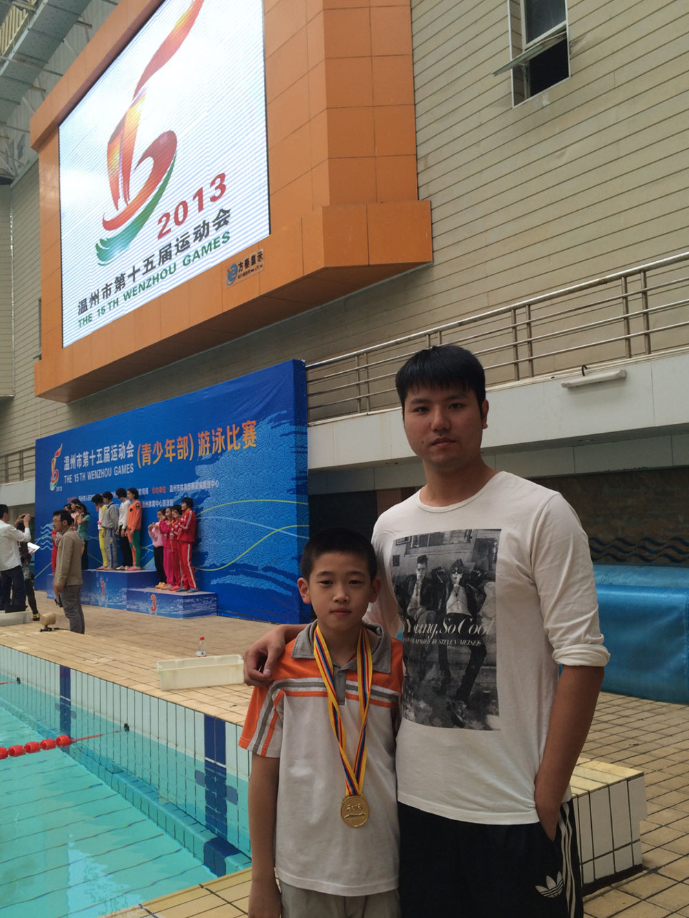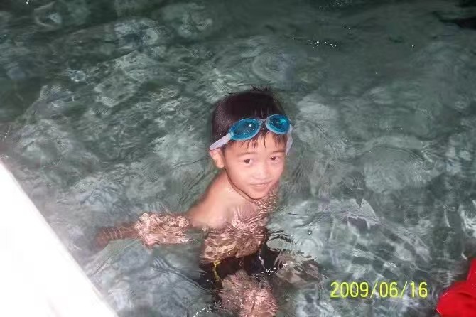 潘展乐四岁半时,就因良好的综合身体素质被温州市少年游泳学校招入选苗班,在启蒙教练叶信的指导下,开启了与水解不开的缘分。