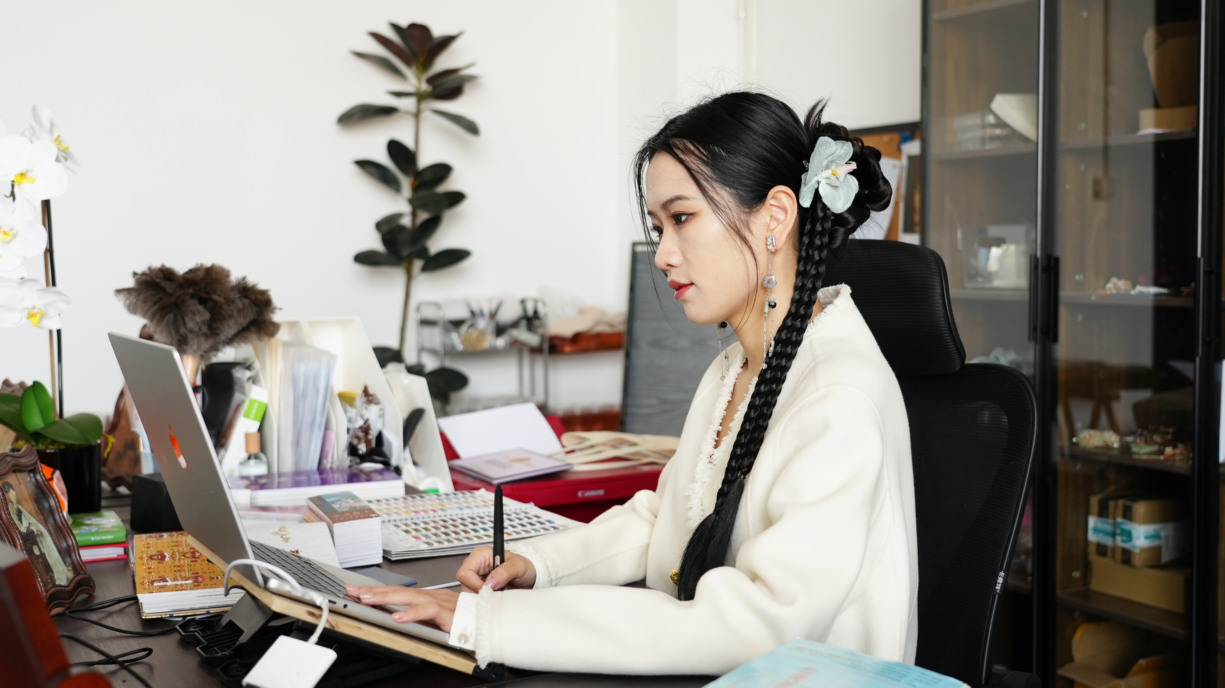 毕业后,她开始尝试将汉服设计及制作作为自己的创业项目。2019年,她与同为汉服爱好者的合伙人合作开设了汉服工作室。期间,她也遭遇过家人的不理解,“家里人觉得这个职业太小众了,汉服圈子那么小,能有多少人来买,一开始不认为我们能做出多少成绩。”
