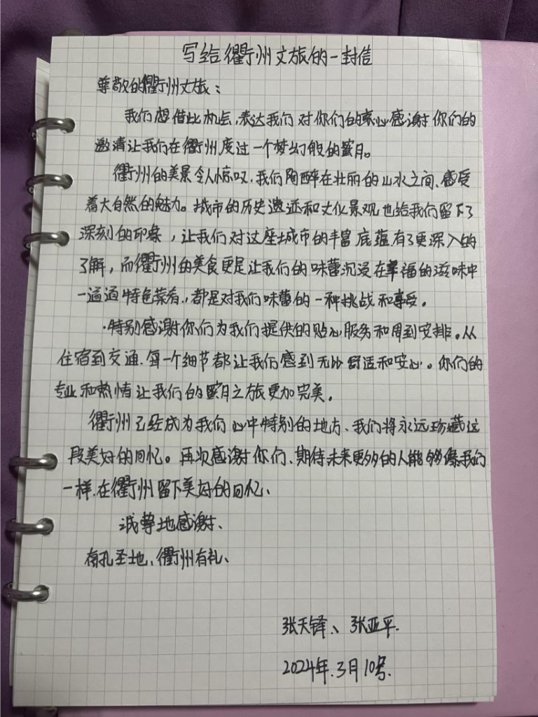还写下了一封感谢信