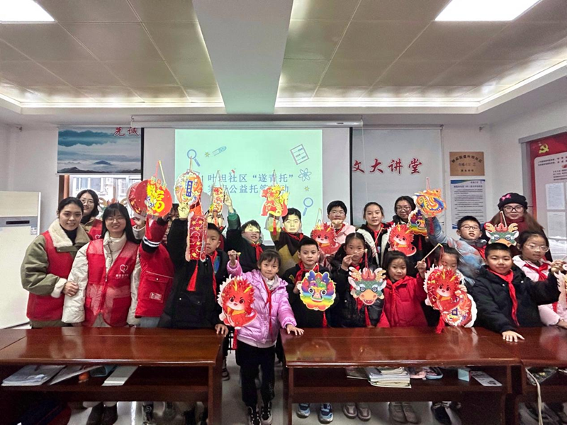 公益课堂上,志愿者介绍了花灯的历史渊源、习俗与寓意,并现场演示纸龙灯的制作方法。从看图到剪裁,从粘贴到装饰,孩子们听得津津有味,只见各式各样的小龙在同学们手中出现,大家开心地向彼此展示属于自己的那盏花灯。